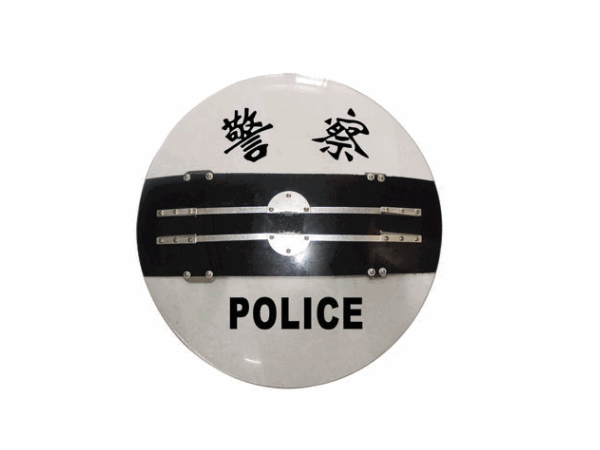 电击圆盾系新型公安防暴器械。它是由厚度为3mm的圆形PC材料制成盾牌主体,在其背面装有耐用、舒适的手柄和调节护带。在执行任务时,它还可以在盾牌主体正面轴出脉冲高压,使其既有防护能力,又具进攻能力。